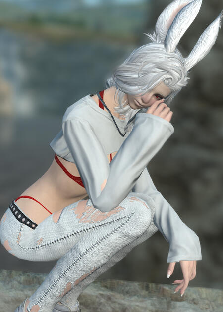 Albino Viera - She looks like a Viera who was born albino, with extremely pale skin and hair, as well as bright red eyes.